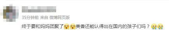 還有網(wǎng)友感慨,“終于要和媽媽團(tuán)聚了,美香還能認(rèn)得出在國(guó)內(nèi)的孩子們嗎?”