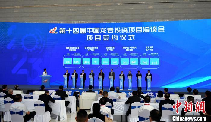11月8日,第十二屆海峽兩岸機(jī)械產(chǎn)業(yè)博覽會(huì)暨第十四屆中國(guó)龍巖投資項(xiàng)目洽談會(huì)在福建省龍巖市拉開帷幕。圖為現(xiàn)場(chǎng)簽約。中新網(wǎng)記者呂明攝