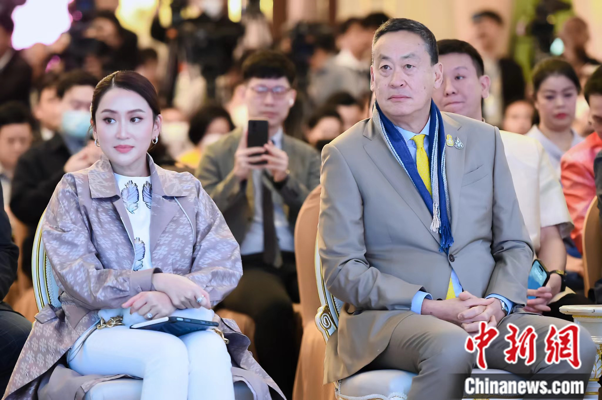 泰國總理賽塔(右)和泰國國家軟實力戰(zhàn)略委員會副主席貝東丹(左)等出席啟動儀式。趙婧楠攝