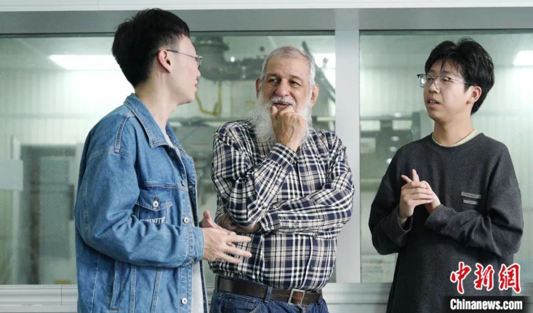 2023年11月,利用實驗室午間休憩間隙,裴德樂在電子科技大學接受了中新社“東西問”采訪。身著紅色衛(wèi)衣、藍色牛仔褲的裴德樂精神矍鑠,言語間中氣十足。