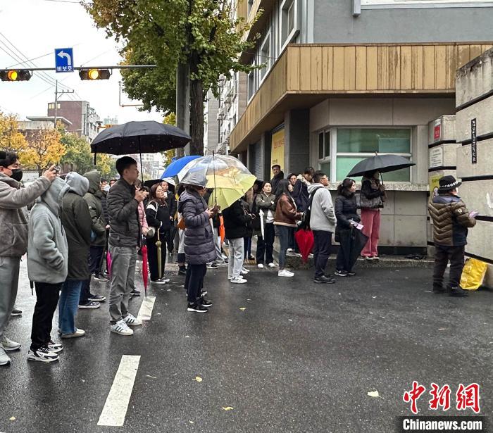 當地時間16時20分許,中新社記者來到首爾市麻浦區(qū)延南洞景城高中校門外,此時距離最后一門必考科目結束還有約17分鐘。不少家長在雨中等待考生。