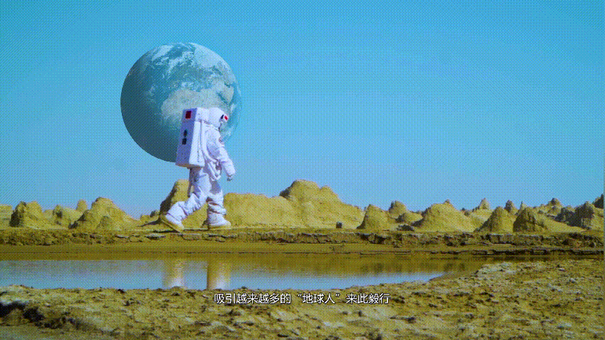 “登陸火星”。截自《茫崖生態(tài)旅游》紀(jì)錄片 茫崖融媒體中心 供