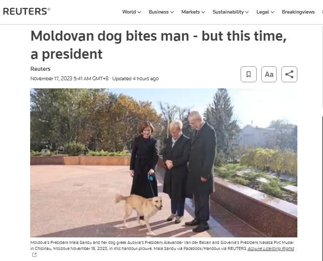 中新網(wǎng)11月17日電 據(jù)路透社援引摩爾多瓦媒體消息,當?shù)貢r間16日,摩爾多瓦總統(tǒng)桑杜的愛犬在總統(tǒng)官邸咬傷了到訪的奧地利總統(tǒng)范德貝倫。