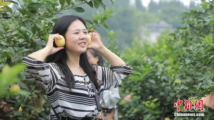 圖片圖為市民在采摘檸檬。潼南區(qū)委宣傳部供圖