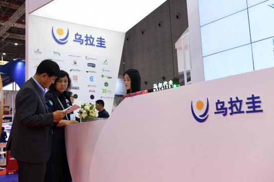 2019年11月6日,參觀者在第二屆進(jìn)博會(huì)烏拉圭國(guó)家館展臺(tái)咨詢。