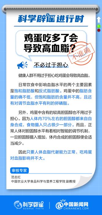 中新網(wǎng)11月27日電 只要人體血脂代謝能力正常,吃雞蛋對(duì)血脂影響并不大。日常飲食中影響血脂水平的兩個(gè)主要因素是飽和脂肪酸和反式脂肪酸。雞蛋中的脂肪含量的確不低,但飽和脂肪的含量并不高,且還有對(duì)調(diào)節(jié)血脂水平有利的卵磷脂。(來源:@科學(xué)辟謠 @中國新聞網(wǎng) )