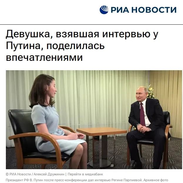普京接受失明女孩采訪。圖片來(lái)源:俄新社報(bào)道截圖