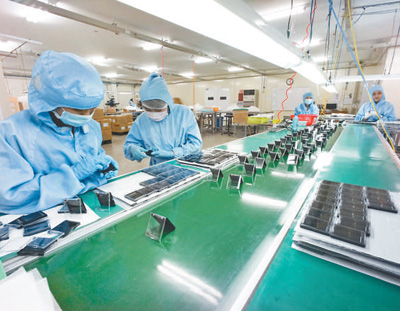 龍江工業(yè)園內(nèi),方正電機(越南)有限責任公司車間里的當?shù)貑T工正在工作。