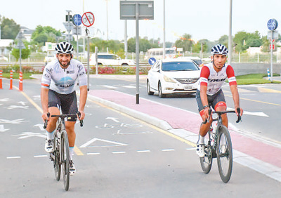 兩名騎行愛(ài)好者在“迪拜騎行”活動(dòng)中。