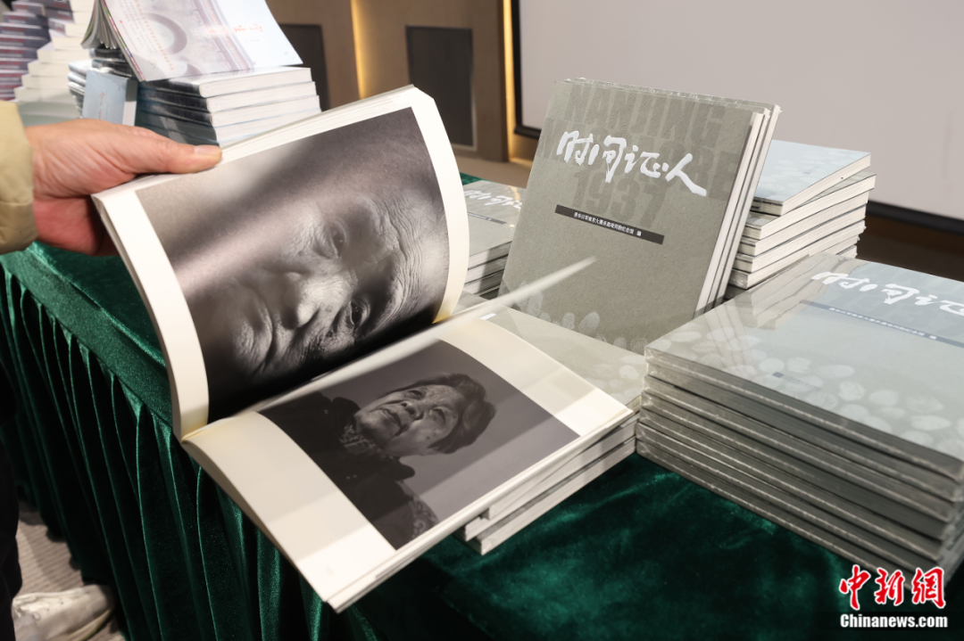 2023年12月6日,侵華日軍南京大屠殺遇難同胞紀念館聯(lián)合各界在南京舉行“2023年度南京大屠殺史研究新書發(fā)布會”,十余本新書集中首發(fā)。圖為與會人士翻閱《時間證人》一書。泱波 攝