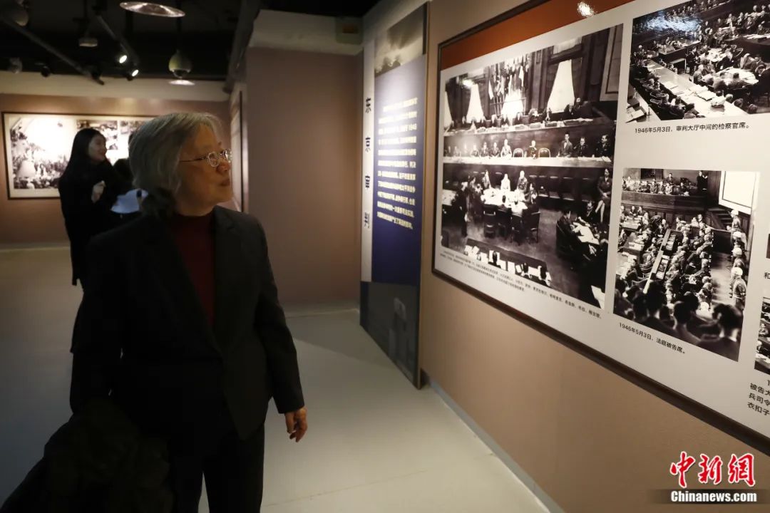2019年12月13日,《正義的審判——紀念東京審判宣判71周年專題展》在中國人民抗日戰(zhàn)爭紀念館開幕,270余幅珍貴歷史照片再現(xiàn)“東京審判”。圖為遠東國際軍事法庭中國法官梅汝璈之女梅小侃參觀專題展。富田 攝