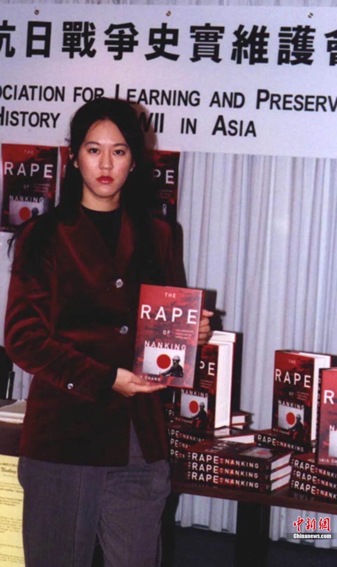 美國華裔作家張純?nèi)缗c她的著作《南京暴行——被遺忘的大屠殺》。鐘欣 攝