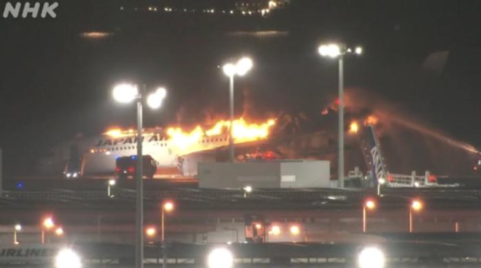 中新網(wǎng)1月2日電 據(jù)日本廣播協(xié)會(huì)(NHK)報(bào)道,當(dāng)?shù)貢r(shí)間1月2日傍晚,一架在羽田機(jī)場降落的日本航空A350客機(jī)與海上保安廳的一架飛機(jī)相撞,隨后燃起大火。據(jù)報(bào)道,目前有消息稱客機(jī)內(nèi)約400名乘客及乘組人員已全員逃離,相關(guān)情況正在核實(shí)中。