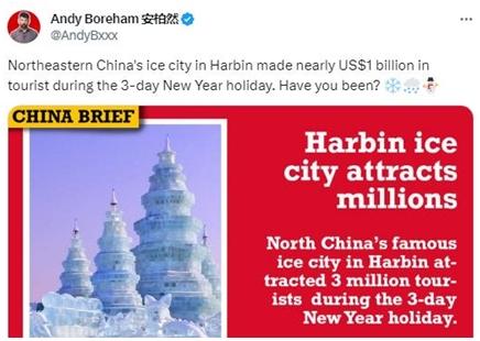 事實上,過去的元旦假期,這座位于中國東北的冰雪城市,不僅在國內(nèi)持續(xù)走紅,外國網(wǎng)友也紛紛表示,想去哈爾濱這個神奇而美麗的地方!