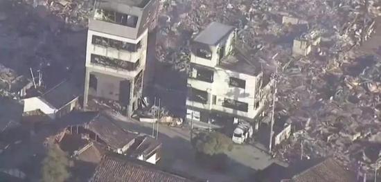 日本震后航拍畫(huà)面。(圖源:央視新聞視頻截圖)