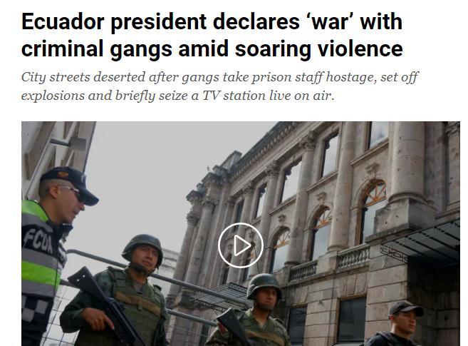 中新網1月11日電 綜合外媒報道,厄瓜多爾總統(tǒng)諾沃亞當地時間10日宣布,該國正處于“戰(zhàn)爭狀態(tài)”。