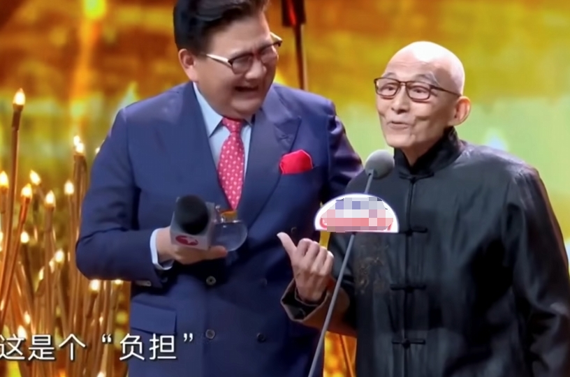 游本昌接過獎杯后,想送給年輕的演員們一句衷心之言。張口前他說了句“好沉”,把手里的獎杯交還給頒獎人幫忙保管,笑著說“這是個負擔”。