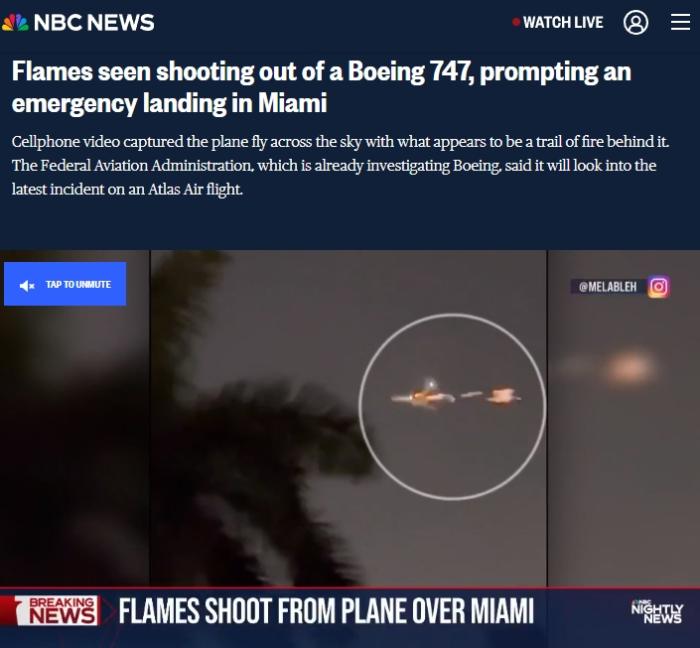 據(jù)報(bào)道,18日晚間,阿特拉斯航空公司的一架波音747型貨機(jī)從邁阿密國際機(jī)場起飛后不久便遭遇發(fā)動機(jī)故障,隨后在同一機(jī)場緊急迫降。