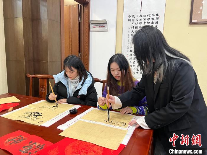 圖為臺(tái)青體驗(yàn)書(shū)法。中新網(wǎng)記者周毅攝