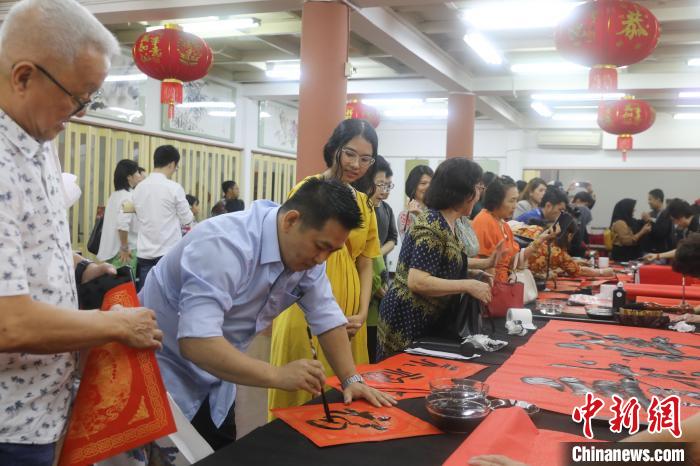 印尼書(shū)法愛(ài)好者揮毫迎甲辰龍年新春