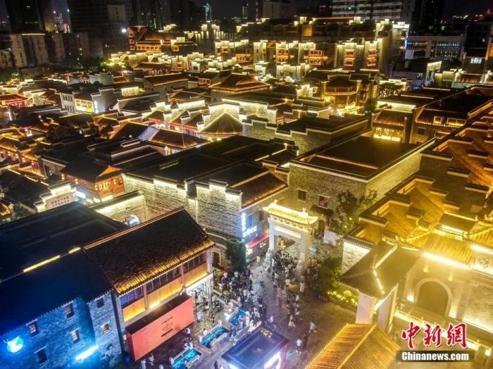 航拍江西南昌萬(wàn)壽宮歷史文化街區(qū),不少游客在古色古香、燈火璀璨的街區(qū)中觀光游玩。劉力鑫 攝