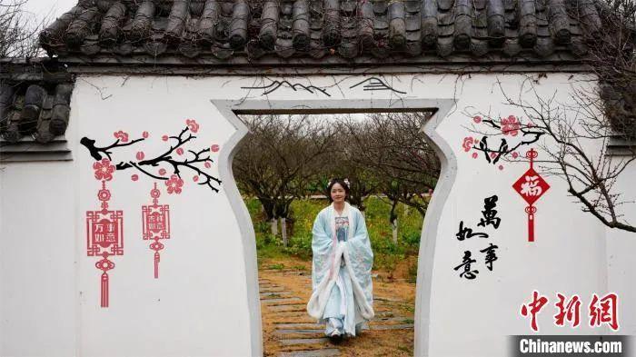 圖為江西南昌縣鳳凰溝梅園內(nèi)身著漢服的游客正在游園。巫發(fā)陽(yáng) 攝
