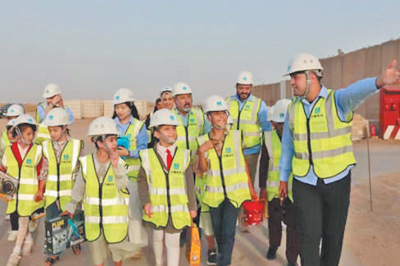 “小小工程師”在參觀機(jī)場項(xiàng)目。