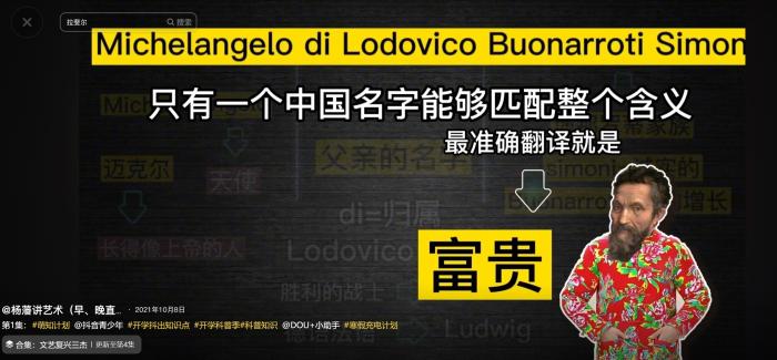 楊藩質疑董董講解米開朗琪羅時抄襲自己的視頻文案。 截圖自短視頻平臺。