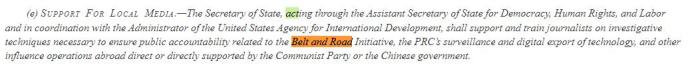 不僅如此,在法案的第136條,美國(guó)還專門制定了針對(duì)“一帶一路”倡議的抹黑策略,主要就是培訓(xùn)一大批反華記者。