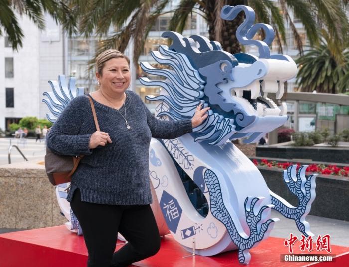 為了迎接中國農(nóng)歷龍年,美國舊金山在不同地點展出設計風格各異的龍雕像,包括“青花瓷龍”“天玉龍”“平安龍”“彩虹龍”和“金運龍”。美國郵政還發(fā)行了龍年生肖紀念郵票,金色象征繁榮,紅色代表好運。