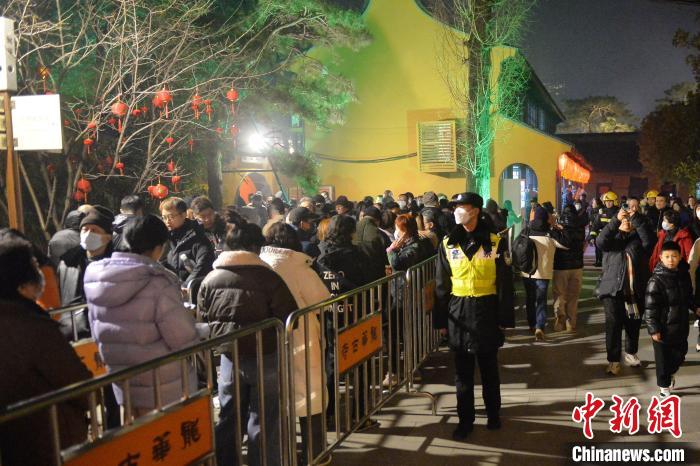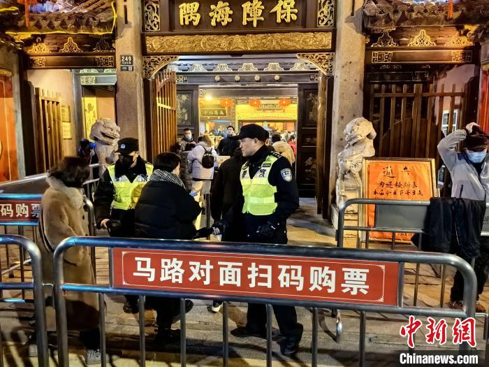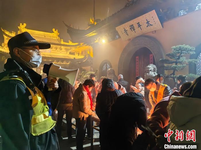 “太平禪寺零點前后達到瞬時人流高峰,人流量接近往年峰值人數(shù)的兩倍。”上海市公安局寶山分局顧村派出所所長何相俊說。位于上海市寶山區(qū)太平禪寺的龍年撞鐘、燒頭香等活動,吸引了大量市民前來進香。為應對2月9日晚至2月10日凌晨的短時大客流,顧村派出所在寺廟入口處增設了蛇形緩沖通道,預計可同時容納500人以上有序排隊入寺。
