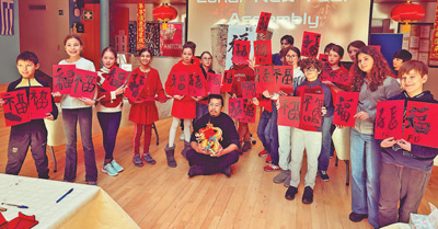 在招待會(huì)上,來(lái)賓們?cè)跁?shū)法展臺(tái)學(xué)寫(xiě)“?!弊趾痛郝?lián),在版畫(huà)展臺(tái)體驗(yàn)中國(guó)雕版印刷技藝,體驗(yàn)中國(guó)非遺和年俗互動(dòng)項(xiàng)目,了解中國(guó)傳統(tǒng)文化的悠久歷史和傳承發(fā)展等。