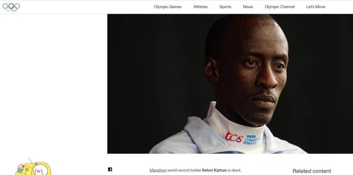 中新網(wǎng)2月12日電 據(jù)奧林匹克官網(wǎng)消息,馬拉松世界紀(jì)錄保持者、肯尼亞名將基普圖姆于當(dāng)?shù)貢r間11日因車禍去世,年僅24歲。