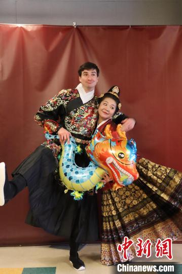 圖為李玉婷(右)與其丈夫朱海丹身著漢服拍攝龍年新春藝術(shù)照?!?受訪者供圖)