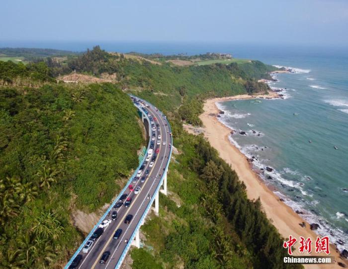 圖為航拍海南環(huán)島旅游公路萬寧山欽灣段,沿途秀麗風(fēng)景吸引眾多游客自駕前來游玩。陳英清攝