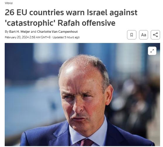 據(jù)報道,目前拉法已經(jīng)涌入了約150萬加沙地帶難民,愛爾蘭外長馬丁表示:“對拉法的進攻絕對是災(zāi)難性的”。