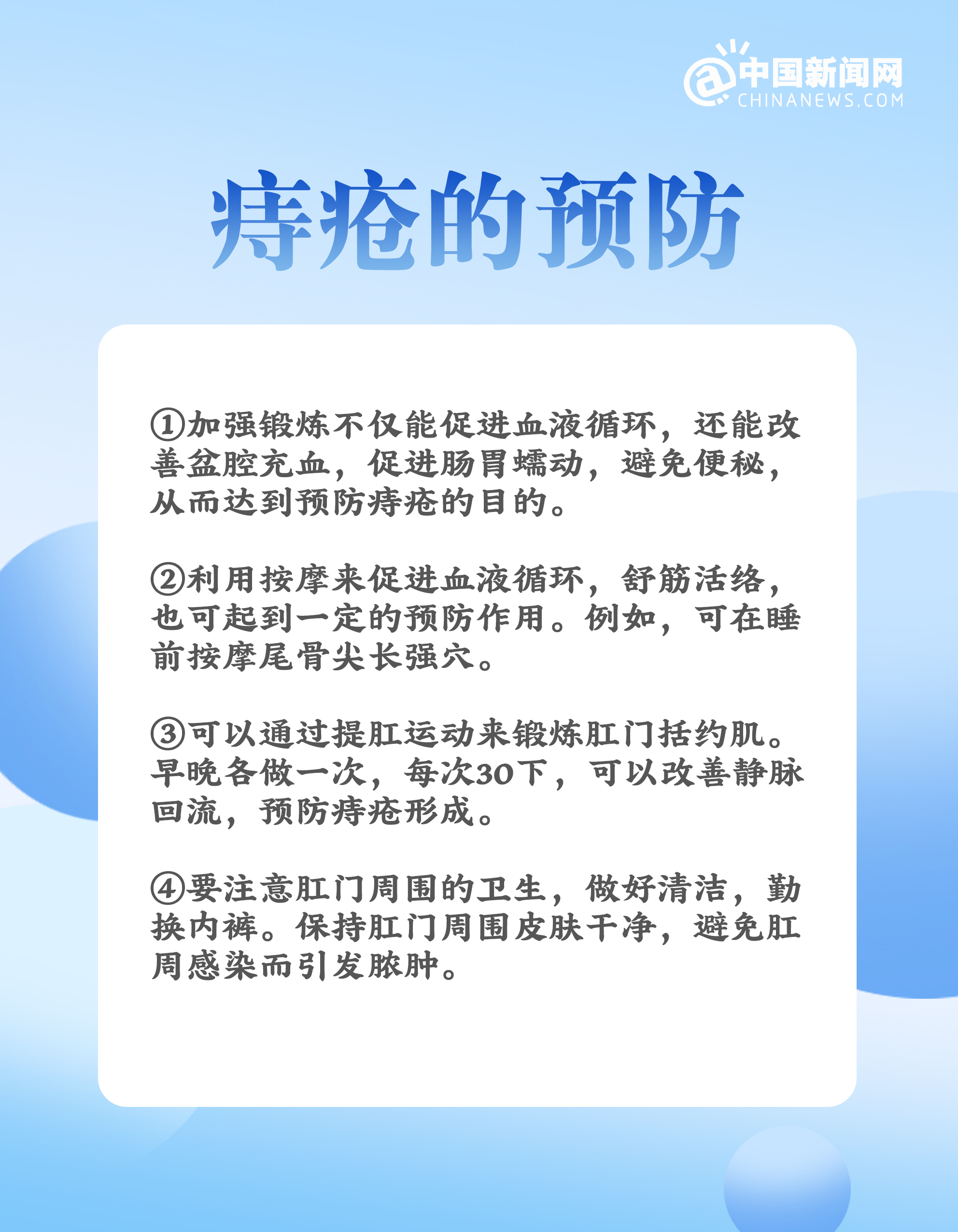 中新網(wǎng)2月21日電 近日,春節(jié)假期結(jié)束,大家陸續(xù)進(jìn)入工作狀態(tài)。然而,由于春節(jié)期間飲食、作息的不規(guī)律,很多人除了腸胃不堪重負(fù),也出現(xiàn)了排便困難、痔瘡發(fā)作等問(wèn)題。那么如何避免痔瘡的發(fā)生?痔瘡發(fā)生了該怎么辦?多吃哪些食物能防治痔瘡?詳戳↓↓