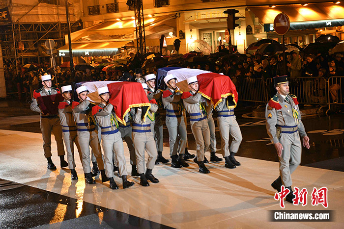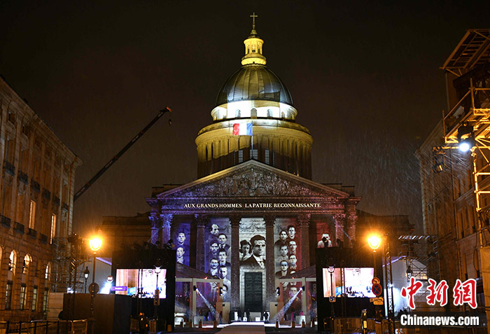 當(dāng)?shù)貢r(shí)間2月21日晚,法國(guó)二戰(zhàn)時(shí)期抵抗德國(guó)納粹侵略的戰(zhàn)士米薩克·馬努尚與他的夫人梅麗內(nèi)一同入葬先賢祠。馬努尚是首位入葬先賢祠的法共抵抗運(yùn)動(dòng)成員。 中新社記者 李洋 攝