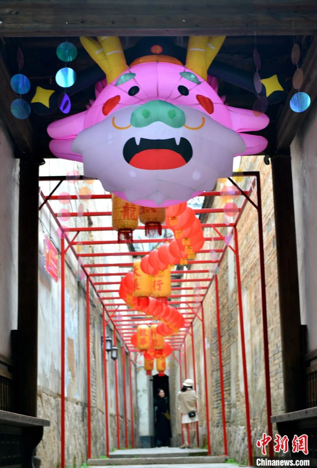 福州三坊七巷古街區(qū)游人如織,龍形燈飾點(diǎn)亮新春氛圍。中新社記者 王東明 攝