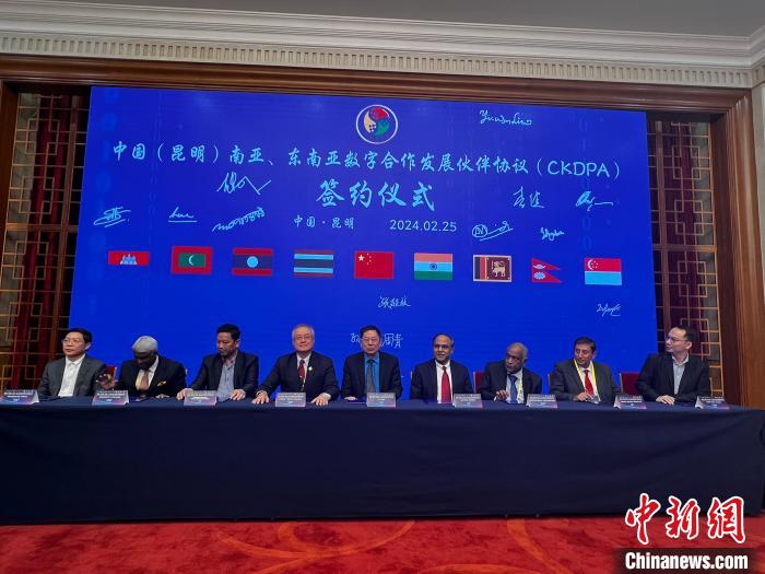 圖為中國(昆明)南亞、東南亞數(shù)字發(fā)展合作伙伴協(xié)議(CKDPA)簽約儀式現(xiàn)場。時(shí)文枝 攝