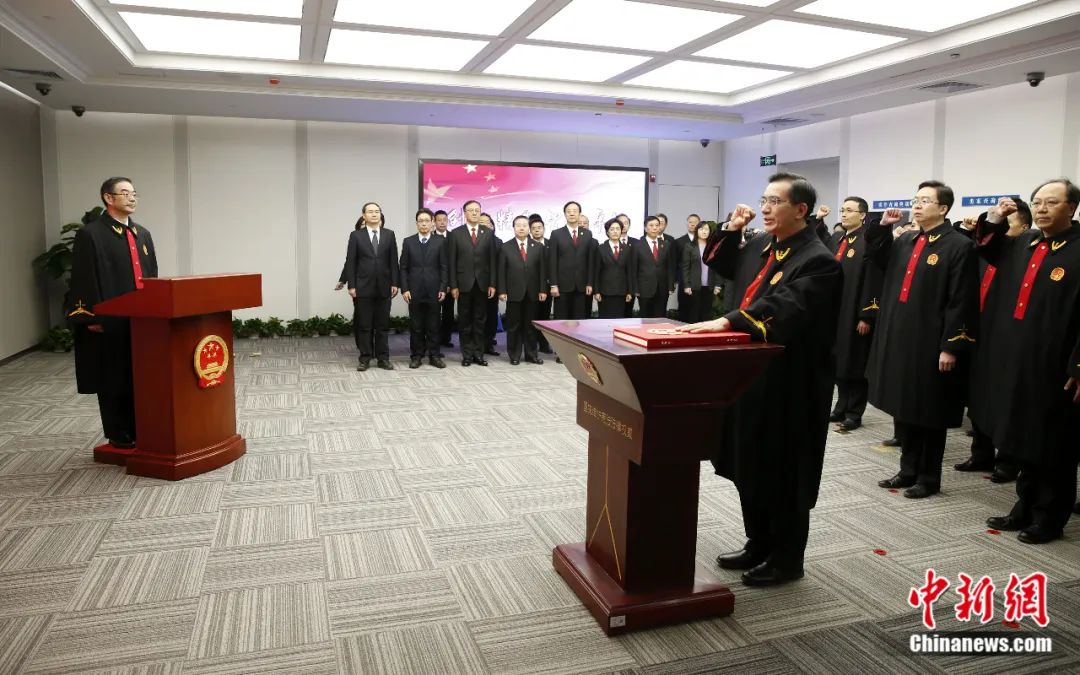 2019年1月1日,中國最高人民法院知識產(chǎn)權(quán)法庭在北京揭牌成立,最高法知識產(chǎn)權(quán)法庭全體法官進(jìn)行憲法宣誓。李慧思 攝