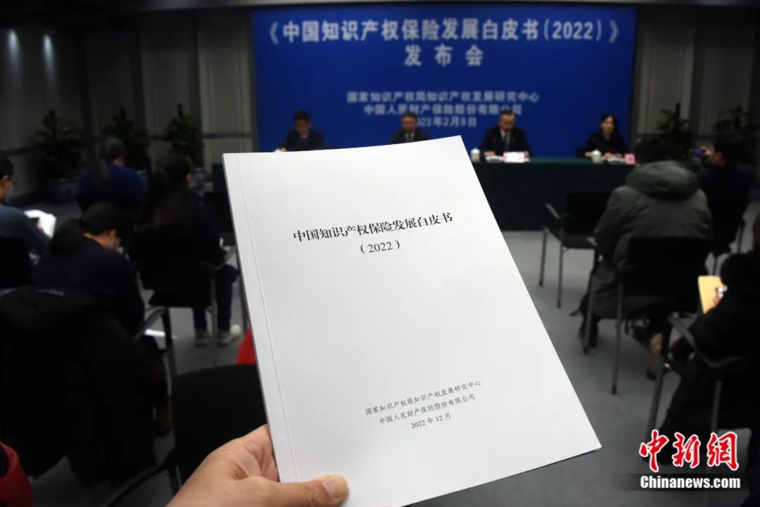 2023年2月8日,中國國家知識產(chǎn)權(quán)局知識產(chǎn)權(quán)發(fā)展研究中心、中國人民財(cái)產(chǎn)保險(xiǎn)股份有限公司在北京正式發(fā)布雙方合作完成的業(yè)內(nèi)首份《中國知識產(chǎn)權(quán)保險(xiǎn)發(fā)展白皮書(2022)》。孫自法 攝