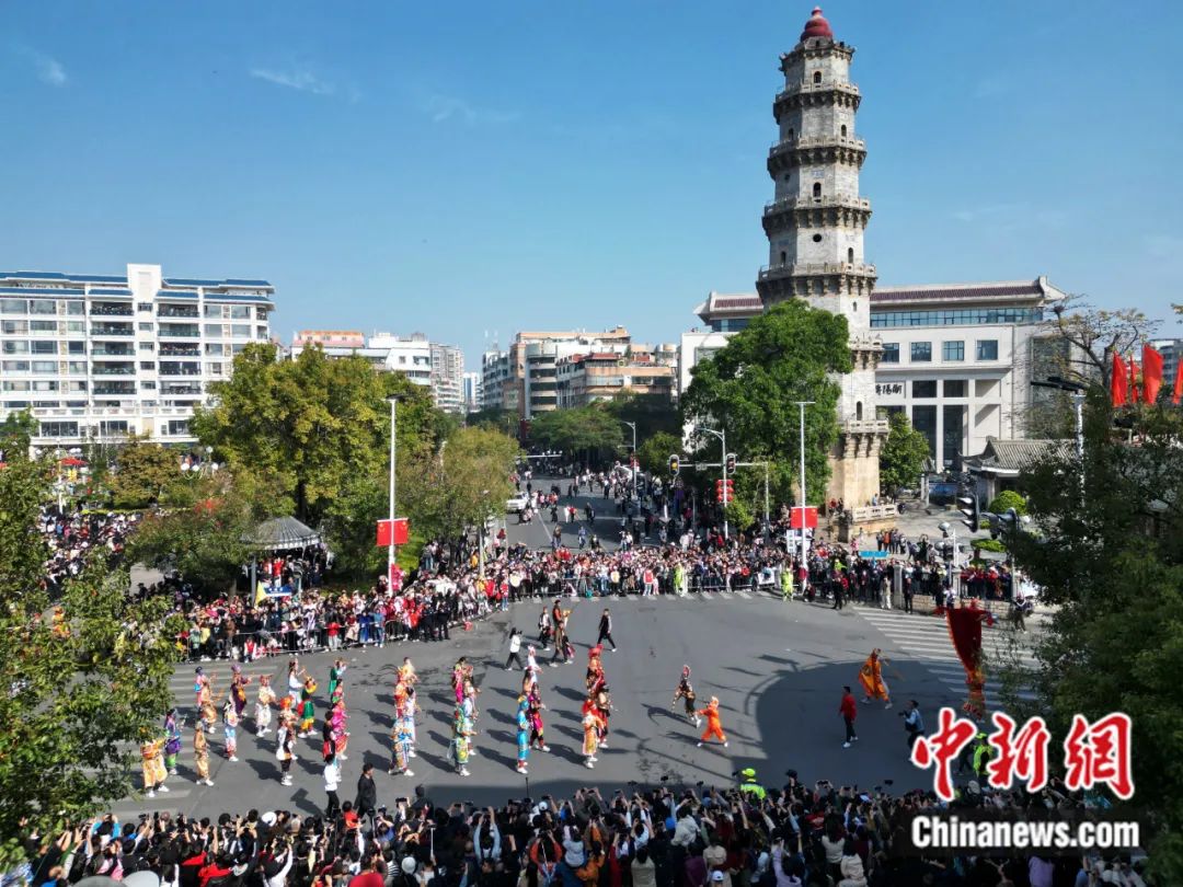 2024年2月14日正月初五,“中華英歌 舞動汕頭”春節(jié)英歌舞展演巡游活動在廣東汕頭舉行,15支英歌隊、近千名“舞者”獻上“年味”十足的表演。陳楚紅 攝