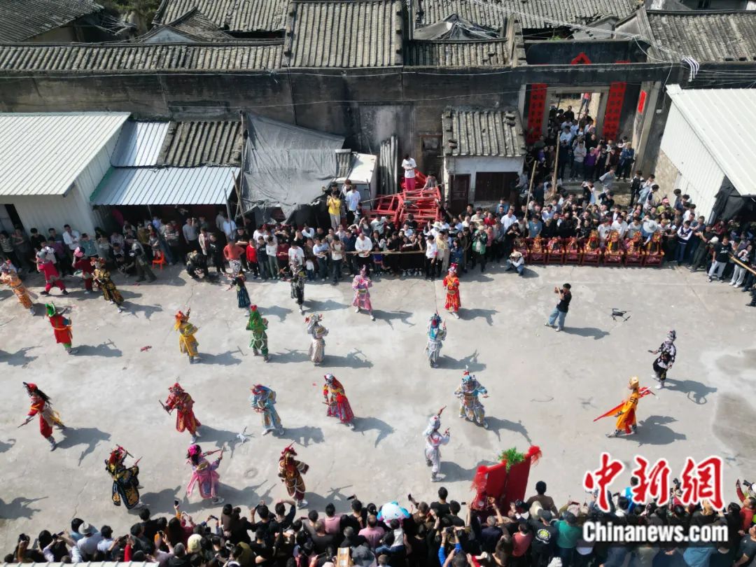 2024年2月20日,廣東潮州溪美寨村舉行傳統(tǒng)游神民俗活動,巡游隊伍的英歌舞表演吸引民眾觀看。陳楚紅 攝