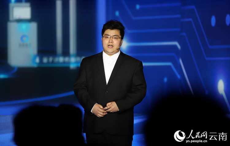 本源量子計算科技(合肥)股份有限公司市場運(yùn)營總監(jiān)俞書林介紹量子計算。人民網(wǎng)記者 李發(fā)興攝