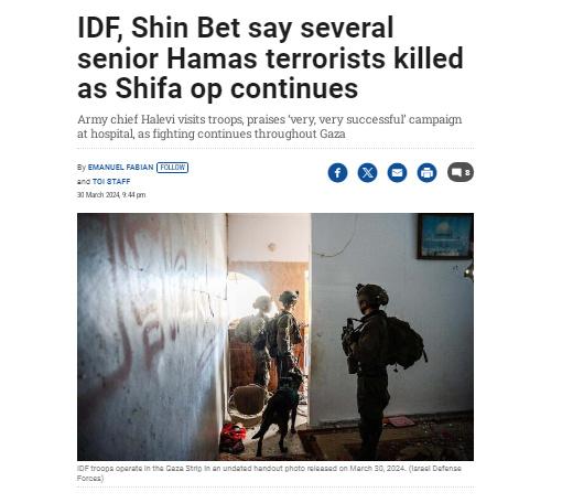 中新網(wǎng)3月31日電 據(jù)《以色列時報》報道,以色列軍方當?shù)貢r間30日宣布,巴勒斯坦伊斯蘭抵抗運動(哈馬斯)4名高級領(lǐng)導(dǎo)人在以軍近日對加沙北部加沙城希法醫(yī)院的軍事行動中喪生。
