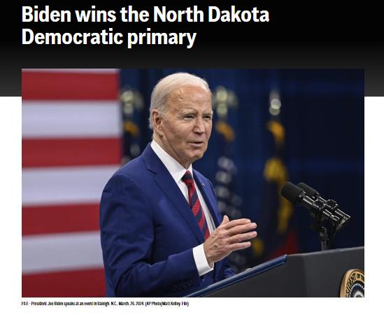 中新網(wǎng)3月31日電 據(jù)美聯(lián)社報道,當(dāng)?shù)貢r間30日,根據(jù)計票結(jié)果顯示,美國現(xiàn)總統(tǒng)拜登贏得2024年美國總統(tǒng)選舉北達(dá)科他州民主黨初選。