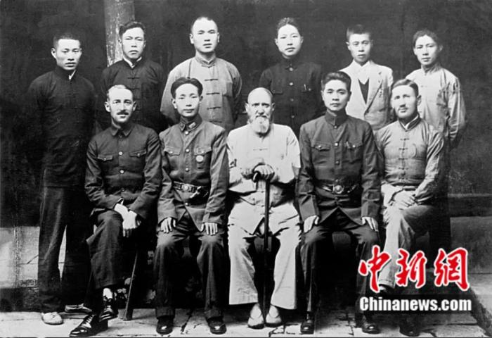 1942年10月中旬,伊文思、法倫斯、詹姆斯頓與中國軍民在舟山的合影照片。洪曉敏供圖