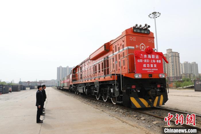 圖為“信陽—武漢—上?!﹪辫F水海聯(lián)運(yùn)列車在信陽站首發(fā)?!∫τ钕?攝