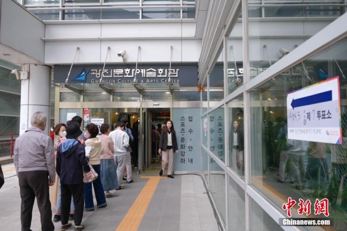 當(dāng)?shù)貢r(shí)間4月10日,韓國第22屆國會(huì)議員選舉啟動(dòng)正式投票,各政黨候選人將角逐國會(huì)300個(gè)議席。圖為選民排隊(duì)進(jìn)入首爾市廣津區(qū)一處投票站。